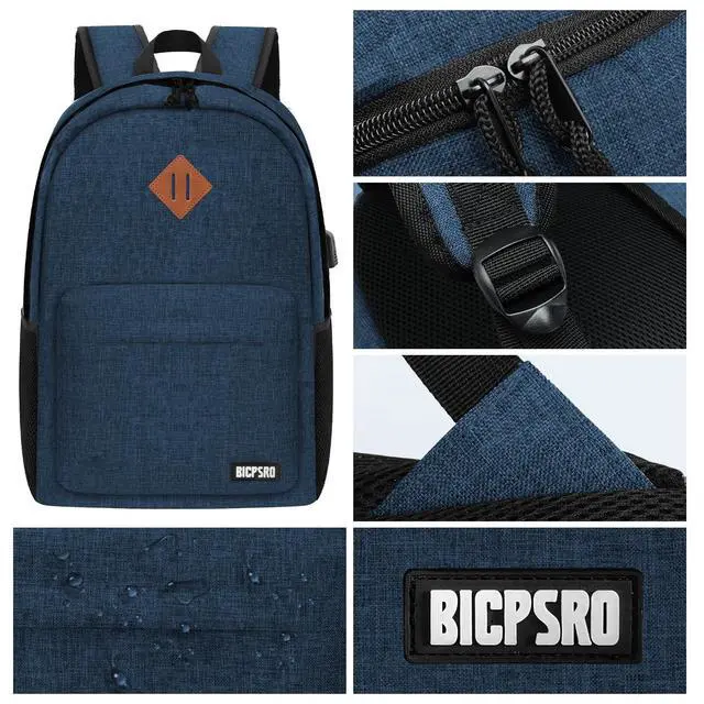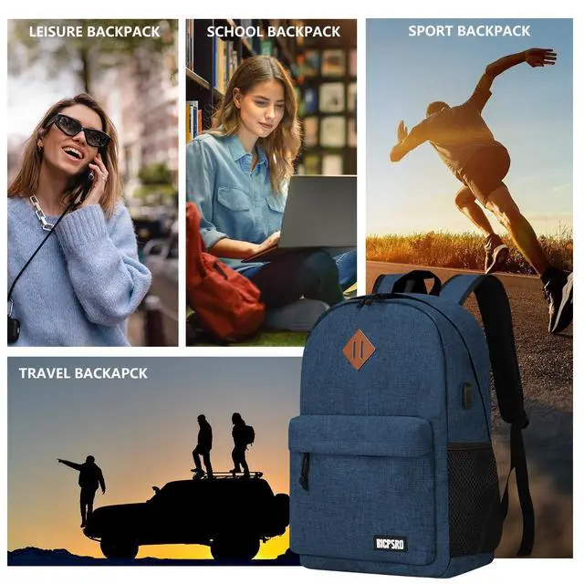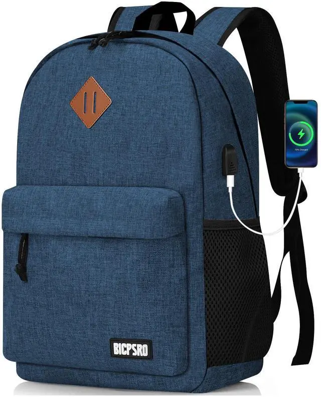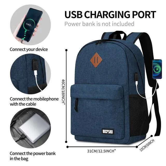 ^^ USB PORT DESIGN: The backpack for men/women with built in USB charger outside and built in charging cable inside, you can plug a mobile power hub into on the inside, then you just connect your usb cable to your blue backpack and plug in your device for easy charging. (Please noted that this classic backpack doesn't include a power bank. ) ^^ CASUAL SIMPLE BACKPACK-Great for back to school, work, hiking, traveling, camping, overnigtht or daily use. Premium gift for the family, friends, co-workers, Birthday, Christmas for Middle School, High School, Teenagers, College, Bachelor, Graduate. ^^ All of our bags have 12-Month WARRANTY. Any quality problems with your bag, please contact us, we will solve it. (Recommended for children 3 years old and above. )