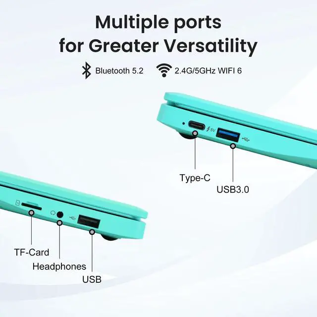 ^^ Comprehensive Connectivity: Includes multiple ports such as USB 2.0, a TF (microSD) card slot for storage expansion, a 3.5 mm audio jack. Equipped with Bluetooth and Wi-Fi for seamless wireless connections to peripherals and networks.