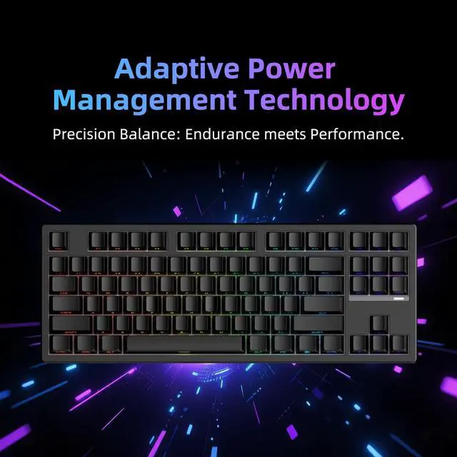 • Adaptive Power Management Technolog: IROK FE87 V2 with Adaptive Power Management intelligently adjusts the keyboard's power consumption in real-time based on usage. It maximizes battery life during idle moments without compromising responsiveness during intense gaming, achieving the optimal balance between endurance and peak performance.