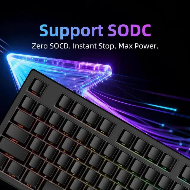 • Support SOCDIROK FE87 V2 supports SOCD, SOCD cleaning ensures clean, predictable inputs: when opposite directions (like Left+Right) are pressed simultaneously, the keyboard resolves the conflict intelligentlypreventing stuck or unintended behavior for precise control in competitive gaming.