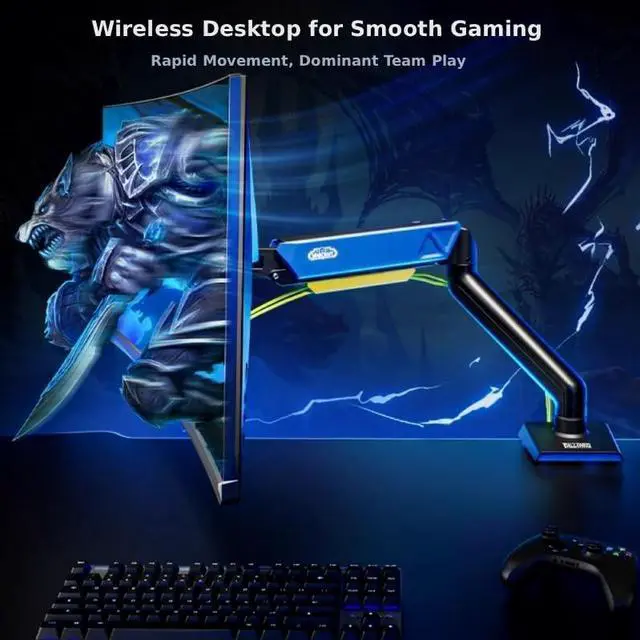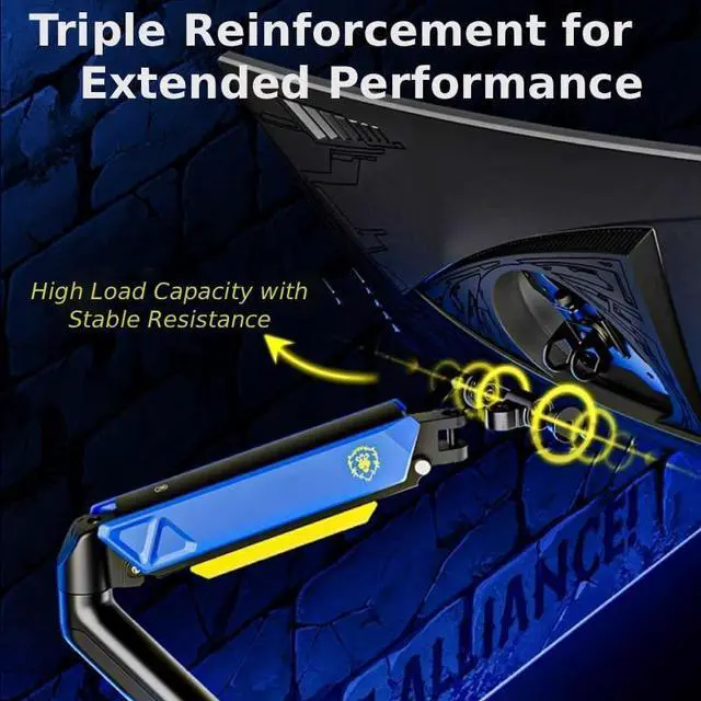 Blizzard Wow Monitor Stand, Adjustable Spring Monitor Arm for 17~32in Computer, Holds 19.8lbs Regular or Curved Screens, 75/100 Vesa Mount, Clamp/Perforate Install (Alliance-Blue)