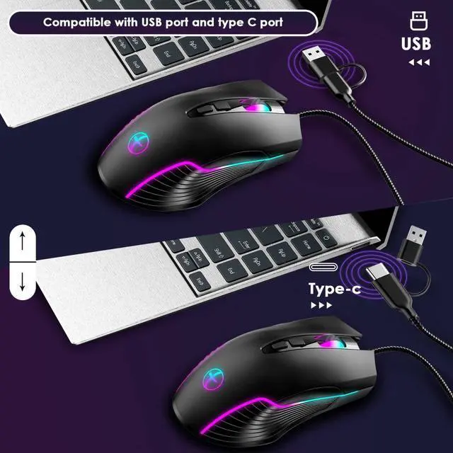 Usb C and Usb A conection & WIDE DEVICE COMPATIBILITY:This USB C &USB A 2 in 1 wired keyboard And mouse features plug and play, eliminating the need for charging or battery replacement.Well compatible with windows7/8/10/xVista,Mac OS