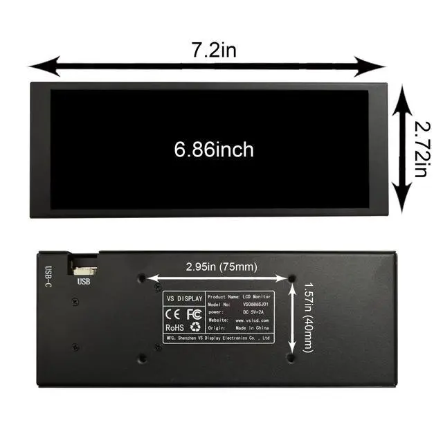 kg/ 1.10 lbPacking list: 1 6.86 inch 1280x480 VS0686SJ01-B LCD Monitor Black Case1 9Pin Signal Cable1 USB Cable1 USB Memory Card With Software1 User Manual Included Software