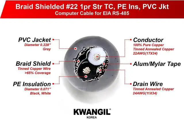 KWANGIL 22AWG 1 Pair (1Pr) EIA RS-485 Shielded Cable Wire is specifically designed for RS-485 communication, a standard for serial communication systems transmission over longer distances in industrial and commercial settings. Here are some of its primary applications: