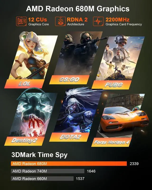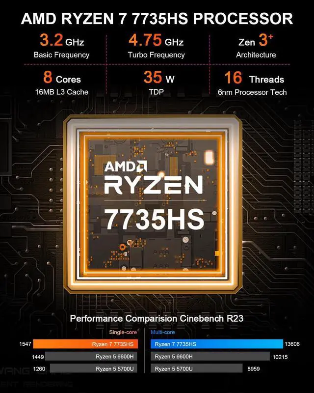 Powerful AMD Ryzen 7 7735HSBeelink SER5 MAX is powered by AMD Ryzen 7 7735HS (8 cores 16 threads, 3.2GH z - 4.75GH z, 16M Cache), using the Zen 3+ architecture, processing performance is 9% increased compared to Ryzen 7 6800U. This mini PC integrated with AMD Radeon 680M 12 core 2200 MHz graphics, ideal for office work, editing high-resolution videos and images, multimedia playback with KODI or IPTV up to 4K and light gaming.