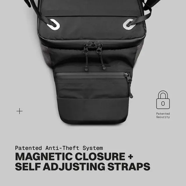 Patented anti-theft magnetic closure provides fast single-motion access while keeping contents secure; engineered for frequent access during commuting, travel, and daily use without fumbling ^^ Durable ballistic nylon construction with water-resistant finish protects gear from light rain and spills; abrasion-resistant fabric and reinforced stitching for daily use and travel resilience ^^ Patented self-adjusting straps automatically adapt to body contours to distribute weight evenly; ergonomic design reduces shoulder strain and maintains comfort on extended commutes and travel days ^^ Expandable main compartment increases capacity when needed while preserving a compact profile; includes padded laptop compartment that fits devices up to 16 " and organized pockets for essentials ^^ Compact carry-on friendly design and lightweight construction optimize travel; compact size suits overhead bin or personal item use and eases airport transitions