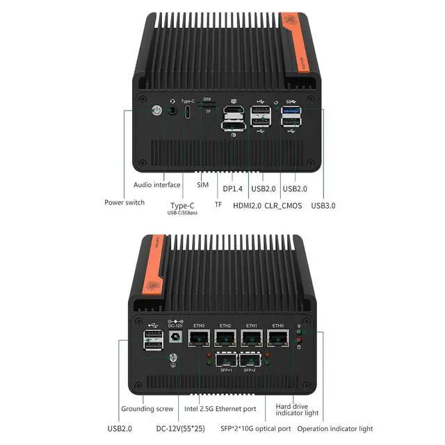 • Rich I/O to meet your needsFirewall Appliance MGNASN With HDMI 2.0+DP 1.4+TYPE-C(dp 1.2) Support for 3x4K@60Hz together, Dual DDR4 RAM slot support for up to 1x32GB SO-Dimm laptop DDR5 Ram Maximum 5600Mhz and 1xM.2 NVMe/PCIe 3.0x1 2280 SSD slot +1*SATA 3.0 SSD/HDD slots (install externally), also it support boot from TF card slot and it also support PXE/AWOL/Watchdog/GPIO etc. which is perfect for your firewall applianceVMRouterhome Server needs.