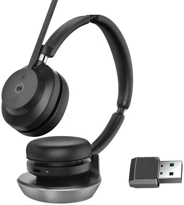 Wireless Stereo Headset with Noise Canceling Mic and Wireless Charging BaseDesign Every Detail ProfessionallyMake Every Stereo Headset CarefullyDirect-sale Store & Professional After-salesLow latency stereo headset with USB dongle & Bluetooth 5.3, convenient connection of various audio devices.