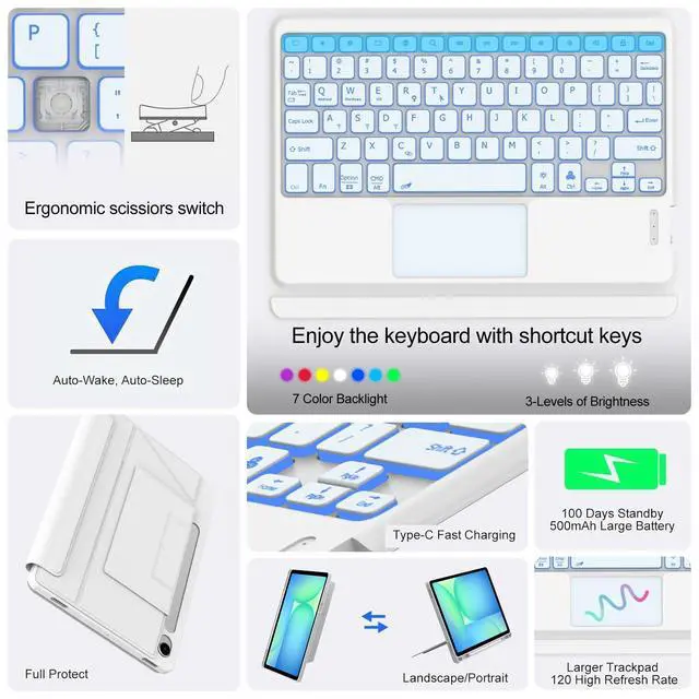 Compatible Samsung Galaxy Tablet 10.9/11 inchThe case with keyboard is compatible with Samsung Galaxy Tab S10 FE 5G 10.9 inch (Model: SM-X520/X526B/X528U) 2025 Release, Galaxy Tab S10 Lite 5G 10.9 inch (Model: SM-X400/X406B) 2025 Release, for Samsung Galaxy Tab S9 FE 5G 10.9 inch (Model: SM-X510/X516B/X518U), for Samsung Galaxy Tab S9 11 inch (Model: SM-X710/X716B/X718U) 2023 Release tablet