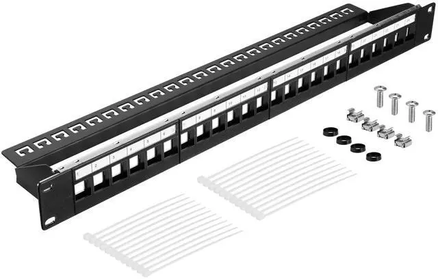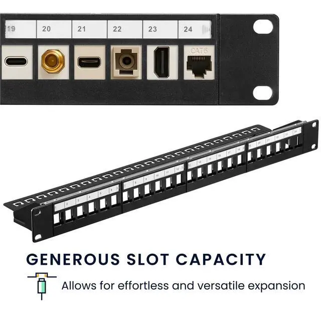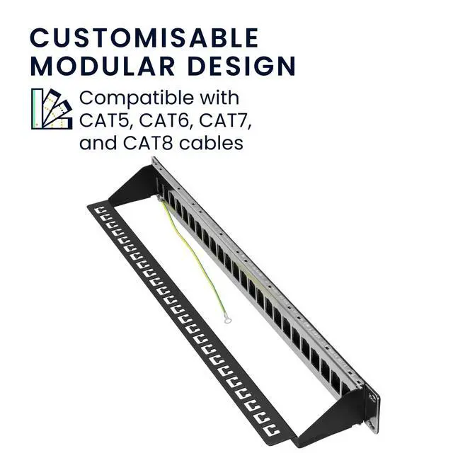 Customizable Connectivity: This 24-port modular patch panel supports keystone modules for tailored network setups. It is compatible with CAT5, CAT6, CAT7, and CAT8 LAN cables for versatile use.