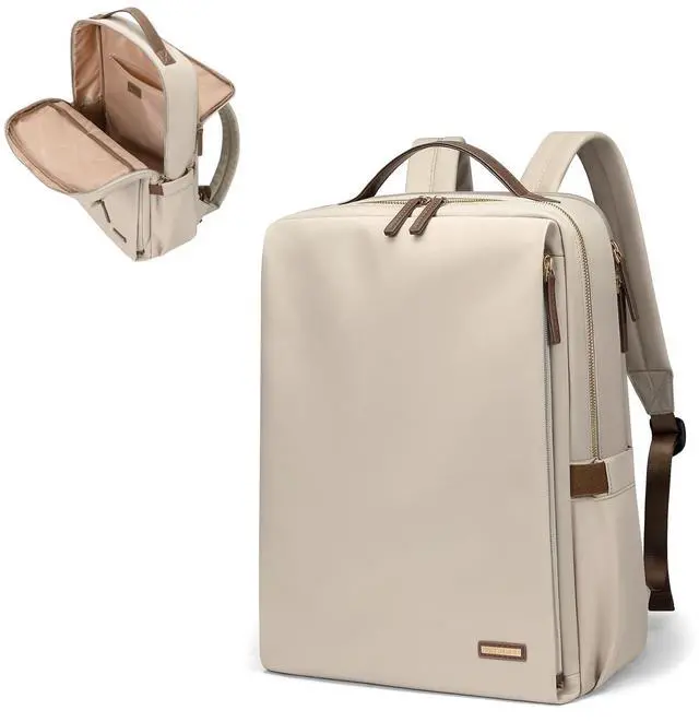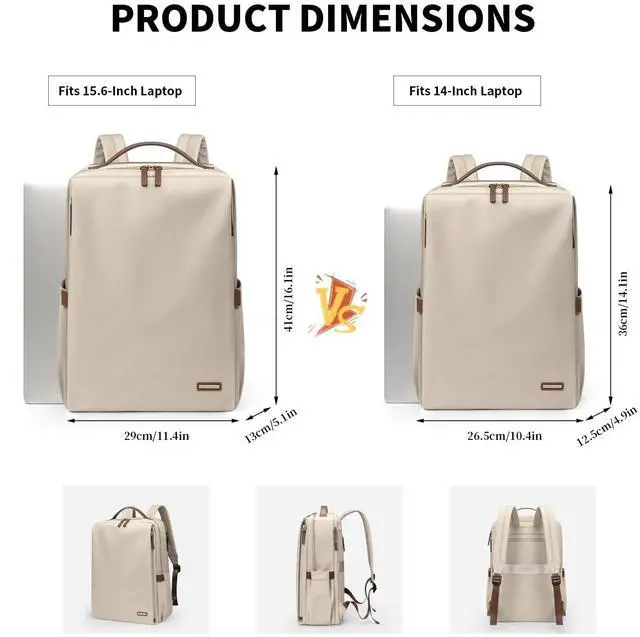 Stylish & Functional- Elevate your everyday style with our laptop backpack for women. Available in Pale Grey, Black, Pinkish Grey and Apricot, the backpack features a sleek design and a roomy interior to fit your daily essentials. Measuring 14.17" x 4.9" x 10.43" /36 x 12.5 x 26.5 cm, it's perfect for work, travel, college, and so on. ^^ Roomy & Organized- The backpack's large capacity features a separate laptop compartment that can fit up to a 14" laptop, a spacious main compartment with 2 slip pockets and a zipper pocket.