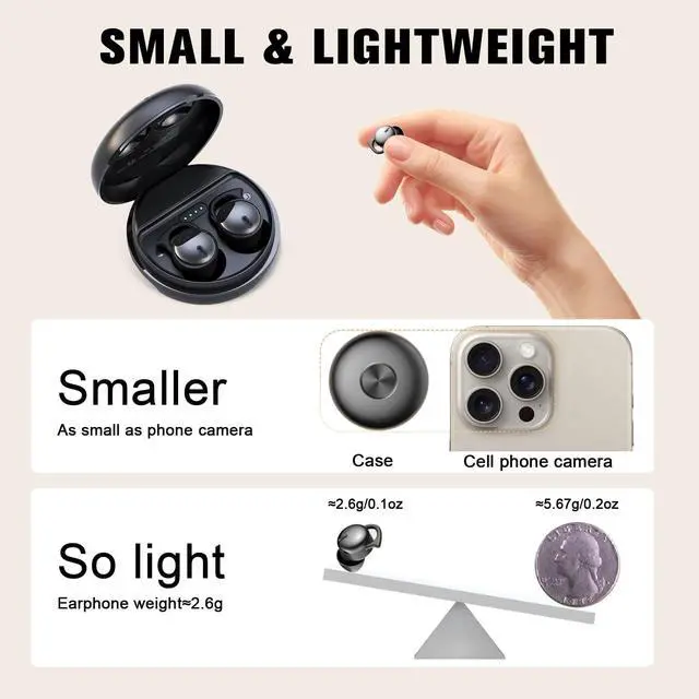 Features: 1, The sleep earbuds is equipped with the latest Bluetooth 5.3 chip, with fast transmission speed and stable connection, providing you with a low-latency listening experience. 2, Using Graphene diaphragm unit to bring high-fidelity sound quality, better high-frequency extension performance, clear and natural sound, making the sound more powerful and powerful. 3, The frontal effect is very invisible. You can hardly notice his presence. If displayed from the side, it is very small and can meet the needs of some special occasions. 4, It really no burden to wear for a long time, even children can wear it easily, so comfortable that forget sleep earbuds exists. 5, One Step Connection - This smallest invisible earbuds are super easy to connect. Open the cover and the wireless earphones will automatically turn on and pair with each other.