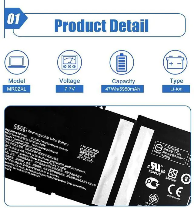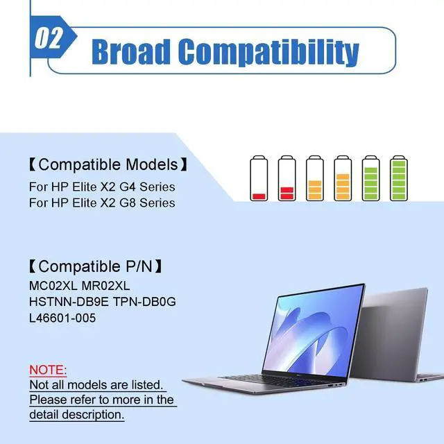 Battery Color: Black ^^ Compatible P/N MR02XL MC02XL HSTNN-DB9E TPN-DB0G L45645-2C1 L46601-005 ^^ Compatible Laptop ModelsFor HP Elite X2 G4 Series; For HP Elite X2 G8 Series Notebook ^^