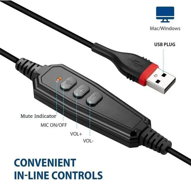 ^^ EASY TO USE: Convenient inline Volume Switch & Mic Mute button for easy access, just one press the key to control your sound when talking. Enjoy skype chat and hear streaming music with USB Headset.
