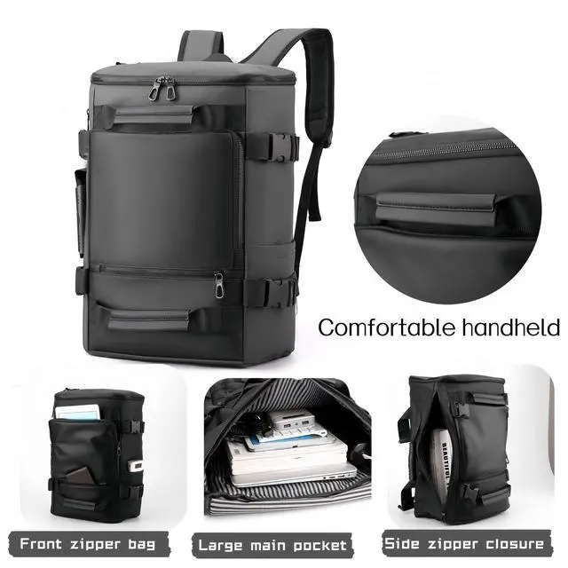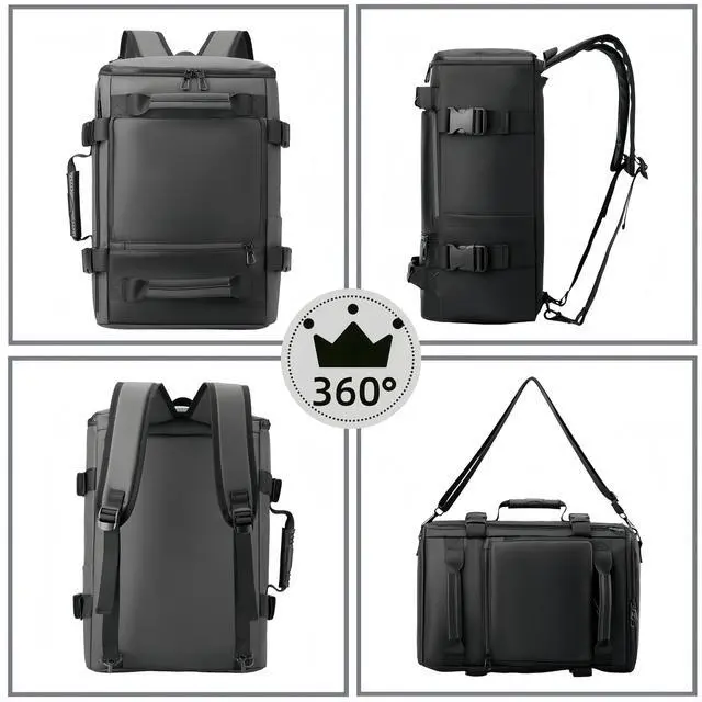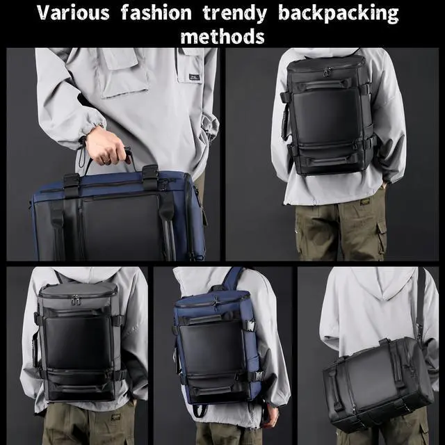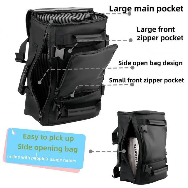 Large capacity design: 1 side mesh bag, 2 front pockets, main compartment strap 1 16-inch laptop compartment one ID bag, 1 main compartment zipper on the side, and 1 zipper bag with hidden backpack strap on the back35L fits in Hiking daily use Travel Airplane Carryon Camping has separate ^^