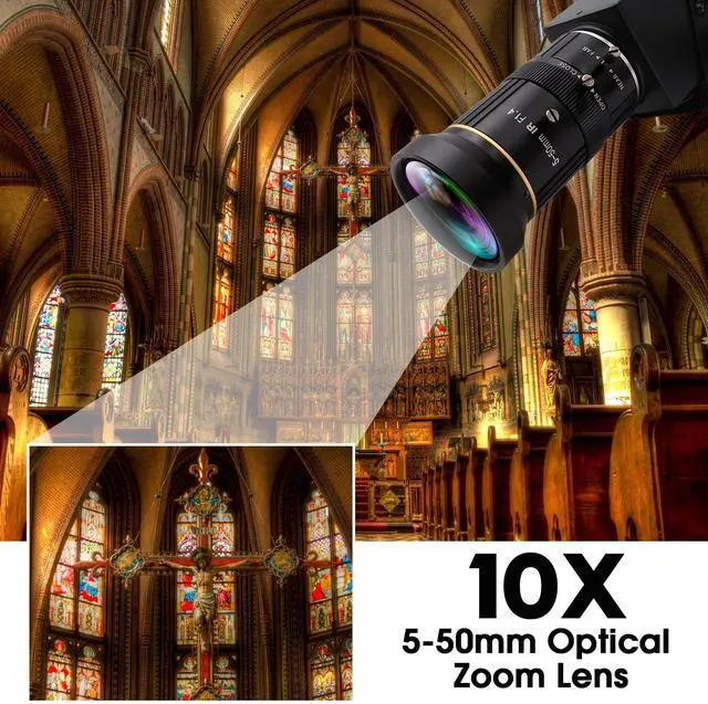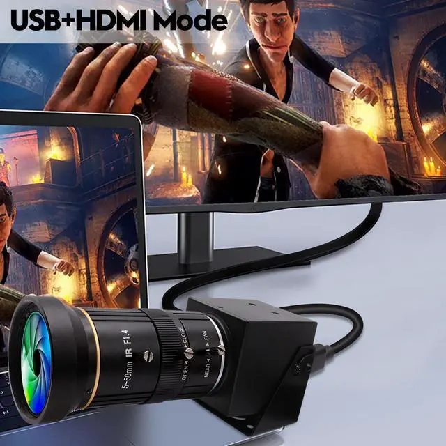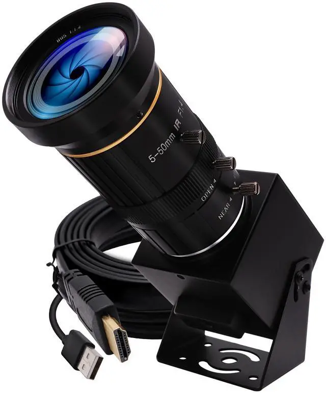 Warm tips: hdmi output is 1080P, usb 2.0 cable output is 2160P. ^^ 5-50mm manual focus and zoom lens enable 2X digital zoom and 10X optic zoom total 10X zoom for super clear details images. Which can achieve ultra HD 3840x2160 30FPS video output. ^^ With New Video format, can achieve up to 50% more compression than H. 264, which means that it can transmit the same quality video using less bandwidth or storage. H. 264/MJPEG/YUY2 optional, can drive 3840x2160 MJPEG 30fps/ H. 264 30fps/ ^^ UVC Compliant Plug&Play - just connect the camera to PC computer, laptop, Android device or Raspberry Pi with the USB cable without extra drivers to be installed or with HDMI cable to motitor for display directly. ^^ Good zoom in and out camera suitable for the research, technical or hobby projects, Raspberry Pi project to record bird feeding, the bird feeder, keep the recording in loop, especially getting a satisfactory long distance focus outdoors.