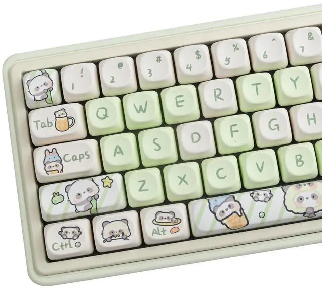 Cute Panda Keycaps: Clear green and cute panda patterns designs make these keycaps stand out from the rest. They are perfect for gamers, typists, and anyone who wants to add a touch of fun and style to their workspace ^^