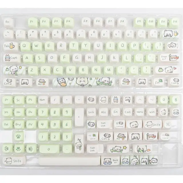 Packge Included: 140 pcs cute panda keycaps and a key puller. Not included the Keyboard. 140 keys can fit for 61/64/84/87/104/108 mechanical keyboard