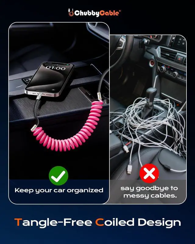 RETRACTABLE & TANGLE-FREE DESIGN: Say goodbye to messy cablesthis retractable coiled USB-C cable extends up to 3.6 ft and automatically retracts to its compact form. Its tangle-free design keeps your workspace and car neat, providing the perfect length exactly when you need it without excess clutter ^^