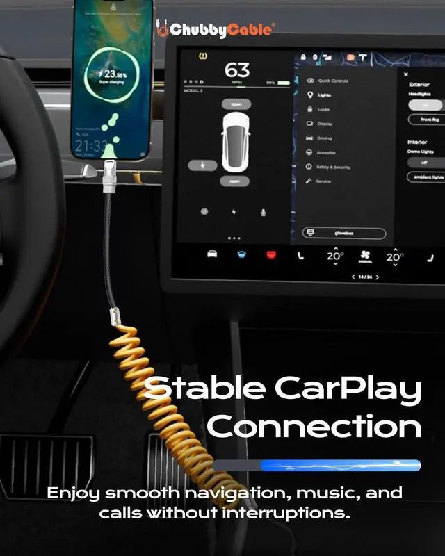 CARPLAY-READY CONNECTIVITY: Designed to support CarPlay functionality, this coiled USB-C fast charging cable ensures stable connection for navigation, calls, and music streaming while driving. Enjoy fast charging and smooth data transfer on the road.
