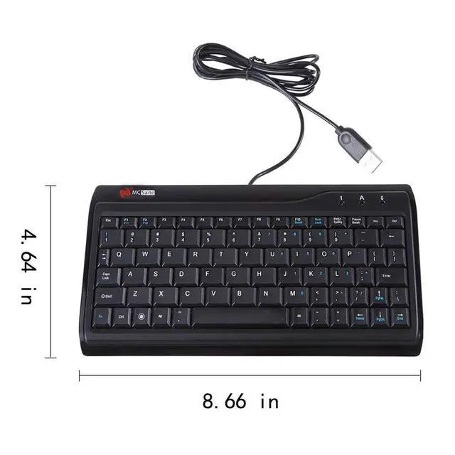 Super Mini Full Size USB Wired Keyboard Portable computer cable 78 - key keyboard, 1.5 meters long, and size 8.66 * 4.64 * 0.75 inches/ 220 x118x19. 2 mm ^^ Wired USB Connection, convenient and easy to use, support plug and play, and is applicable to any desktop and laptop computers. ^^ Small stature high grade PVC material, durable and comfortable with laser engraving keypad. ^^ Comfortable buttons perfect coordination with the computer, give you a comfortable office life. ^^ Mat to ensure that it is unlikely to slide the keyboard, stable operation, after the 1 million test, stable performance and perfect operation.