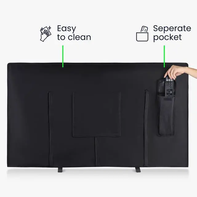 fabric STORAGE POUCH: Our tv covers for outdoors have a convenient pocket on the back where you can store your TV remote control. Keep your television remote safe in this waterproof velcro pouch when not in use