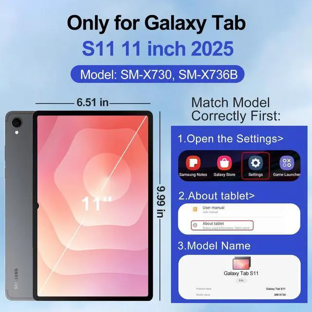Compatibility: Protective Case for Samsung Galaxy Tab S11 11 inch 2025, SM-X730/ X736B; NOT fit for other tablet model. Please kindly check your models before purchase this case for samsung tablet ^^