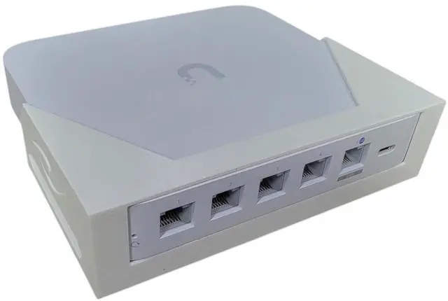 Transform your network setup with this practical wall mount designed specifically for the Ubiquiti Cloud Gateway Ultra UCG-Ultra and Gateway Max UXG-Max. This versatile mounting solution allows for both upward and downward port orientation, giving you flexibility in your installation. Crafted from durable PETG material, the mount comes complete with all necessary mounting hardware for quick and easy installation. The rack-mounts slim form factor is an efficient space-saving solution. This US-manufactured mount requires no assembly and includes everything needed for secure wall or backer board installation. The mount is built to support your networking equipment while maintaining proper clearance for cables and ventilation.