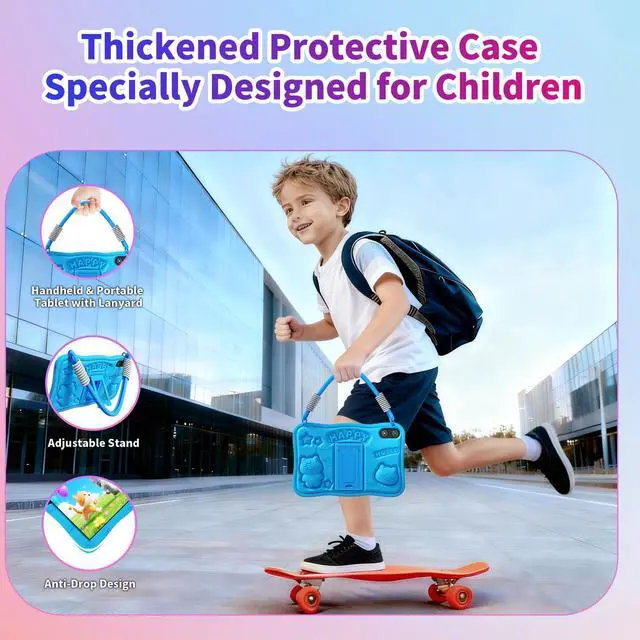 The engaging and well-organized design supports a smooth user experience for all ^^ [Multi-Functional Protective Case with Stand & Strap]Each tablet includes a lightweight, shock-absorbent silicone case designed for reliable protection. This versatile case features a built-in stand for hands-free viewing and a detachable strap for convenient portability. This practical accessory makes the device an ideal companion for use anywhere