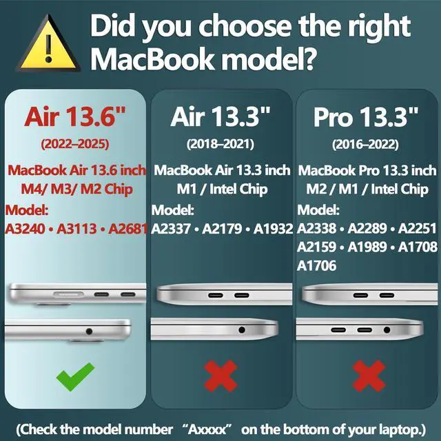 • For the latest MacBook Air 13.6 inch Touch ID case -- Only compatible with MacBook Air 13.6 2025 2024 2023 2022 Release ModelA3240 with M4 Chip or A3113 with M3 Chip or A2681 with M2 Chip