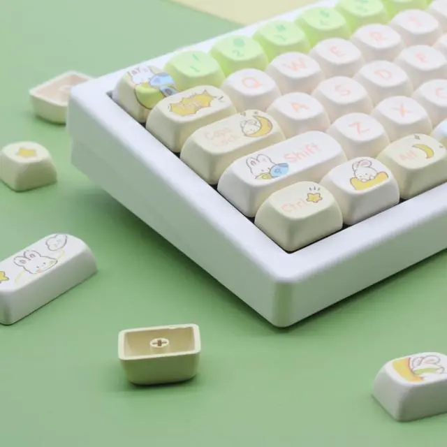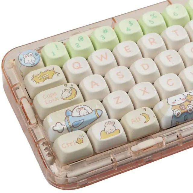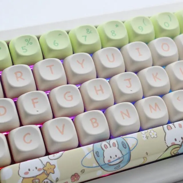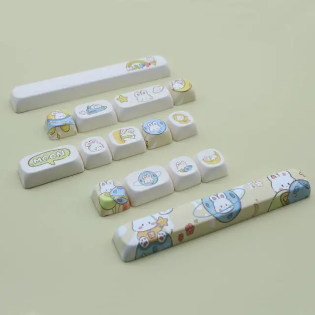 CUTE CUSTOM THEME KEYCAPS These custom keycaps are some bunny&space theme cute keys,including 2 spacebars(one of them is 5-side dye sublimation) and lots of novelty cute keys.