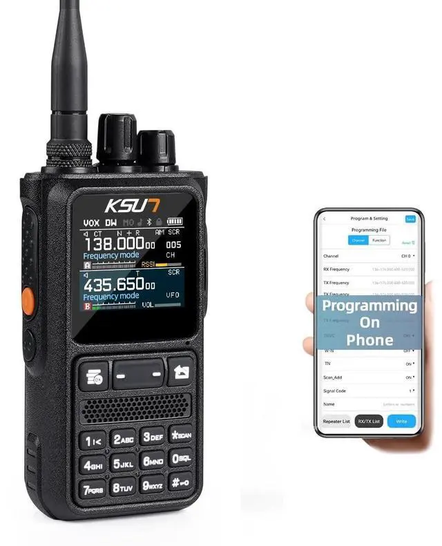 Mobile App Write Frequency: This two-way walkie-talkie supports cell phone APP to write frequency online. You can download the app and connect it via Blue-tooth. Please note that Blue-tooth headset is not supported. ^^