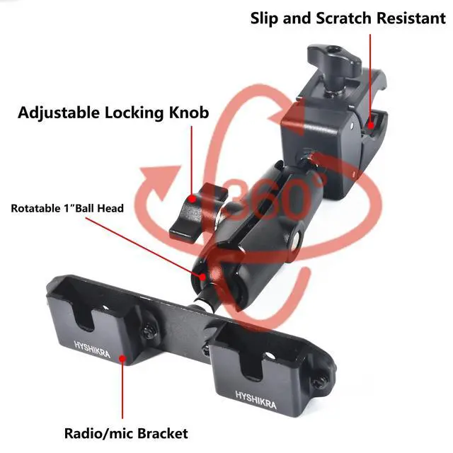 Adjustable Dual-Clamp System: Features a double magic socket arm and dual-clamp mount design, enabling full 360 rotation and customizable angles for perfect positioning. Lock your walkie-talkie or radio mic at any orientation while maintaining a secure, wobble-free grip.