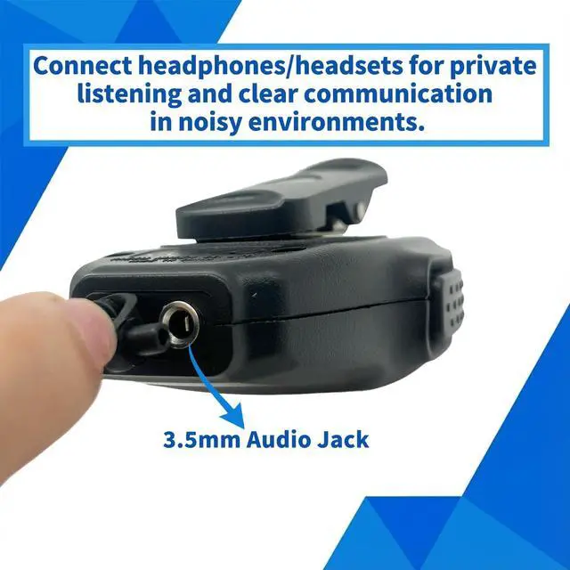Equipped with headphone jack: Radio speaker microphone comes with a headphone jack. When a headphone is plugged in, users can receive important information clearly even in noisy environments, meeting their need for private listening.