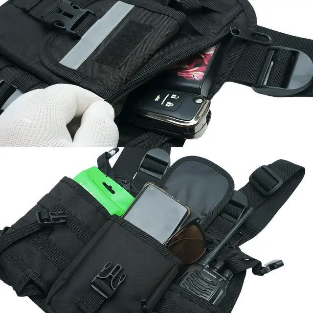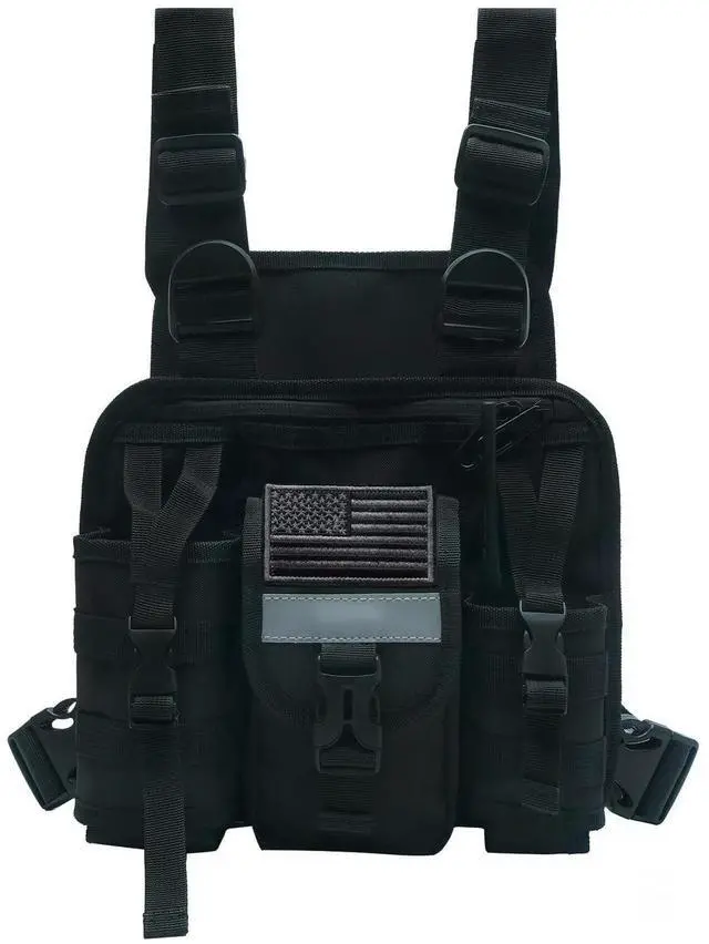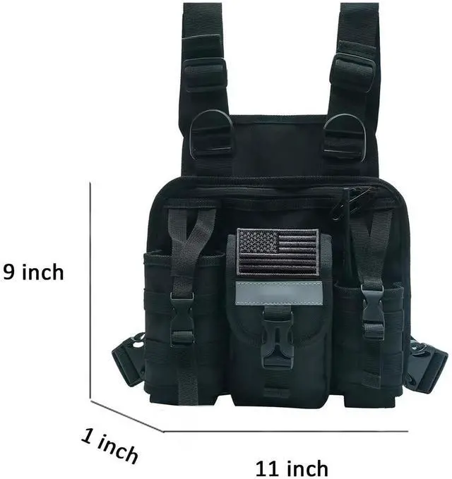 Chest radio harness Made of superior nylon water resistant material, lightweight and durable, wear resistance and tear resistance. SIZE 11.02 * 1.57 * 9.06 inch ^^ Small backpacks has adjustable strap allows you to adjust according to your own needs, easy to adjust ^^ Chest bag with radio holder, Reflective design on the shoulder strap not only provides excellent low light visibility, but also ensures the safety of outdoor activities at night ^^ Chest tool harness adopts a multi pocket design, and is suitable for walkie talkies, backup batteries, portable chargers, mobile phones, GPS, etc ^^ Chest rig with radio pouch, suitable for various professions, such as emergency responders, EMT paramedic, SAR motorcycle team, Wilderness SAR Ranger, Wildland and Urban Fire Fighting, Search & Rescue, Police, Tactical, LE, EMS, SAR, Ski Patrol, Mountain Rescue, Amateur Ham Radio, Race Events