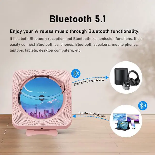 Multi-Function CD PlayerMICOCIOUS Home CD Player has small body with more function. It is not only a portable CD player which is compatible with CD/CD-R/CD-RW/MP3/WMA audio formats, but also work as a FM Radio, Bluetooth Hi-Fi Speaker, TF Card Music Playback, Mini Home Speaker, USB Flash Drive Player. ^^ Built in BluetoothApplied for Newest Bluetooth 5.1 technology, this portable CD player comes with wider signal range, faster connection & transmission speed. It can be connected with mobile phone, tablet or other Bluetooth-enabled devices. With Built-in dual Hi-Fi Bluetooth speakers, this music player has better sound quality.
