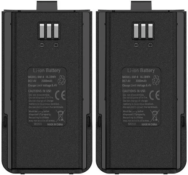 Brand: BAOFENGCapacity: 2200mAhBattery Type: Li-ion BatteryVoltage: 7.4VC ompatiable with: GD-77 GD-77S GD-77A DM-1801 DR-1801UV GA-510 BF-H6 TD-H6 radio If you have any problems with the compatible models, please feel free to reach out.