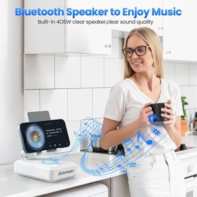 Note: supports cases with a thickness of 0.15 inches, Please avoid cases with metal rings, pockets, or magnets. ^^ Stable Bluetooth 5.3 Bluetooth speaker with built-in speakers, surround sound effect, providing clear and loud sound effect, so that you can get a better listening experience when enjoying music or watching videos. The hands-free microphone feature ensures clear quality in calls. 5.3 Bluetooth technology, the connection is fast and stable, and ensuring smooth transmission of sound quality. ^^ Adjustable Phone HolderThe adjustable angle design ensures that the phone is always in the best viewing position, relieving neck fatigue caused by bowing the head for a long time. The stable non-slip base and weighted structure prevent tipping, and the foldable stand design is easy to carry and saves space. Jteman cell phone stand speaker is a practical tech gifts gadget. ^^ Practical Gift ChoiceThe product comes with a 9V2A adapter, a 3.28 feet Type-C cable, an instruction manual, and gift box packaging, so there is no need to purchase additional accessories. This Jteman multi-functional speaker stand is a perfect gift for men and women, and can also be used as a birthday gifts, Christmas gifts, white elephant gifts for adults, Mother's Day, Father's Day, Valentine's Day gift, men's gift, and anniversary gifts for men/him/her.