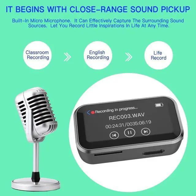 Sound Equipment: Supports external microphones to improve recording quality, memory card slot allows for expansion of resource library. The file management system is simple and efficient, making it easy to import and export recordings, books, meeting the efficient needs of content creators.