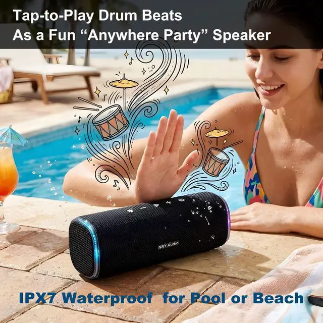 Playtime: Delivers stable, low-latency connections up to 100 ft (30m) in open spaces (real-world range may vary with obstacles/interference). Up to 25 hours of playtime on a single charge - party from sunrise to sunset! Works seamlessly with voice calls, recordings, and voice assistants. Enables hands-free control (e. g., Siri, Alexa, Google Assistant). ^^ Drum-pounding Beats & EQ-Powered RGB LED lights flash, pulse, and auto-sync to your musics rhythm. Transform bedrooms, patios, or pool decks into wild mini-clubs! Just quick-press the "Light Button" to toggle the light show on/off (save battery or go full disco mode in a snap). ^^ What is in the