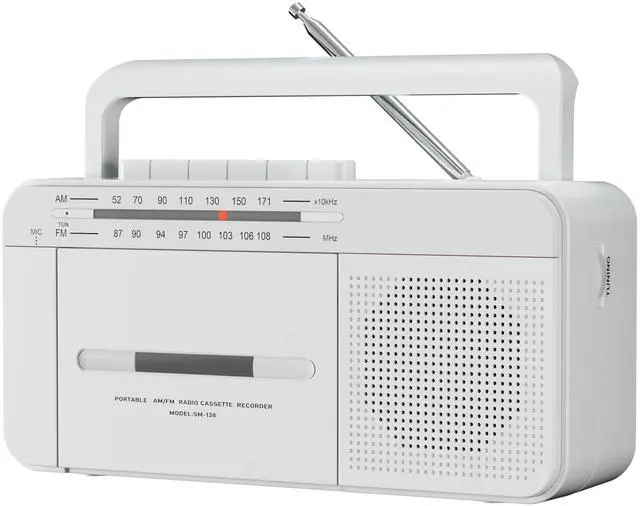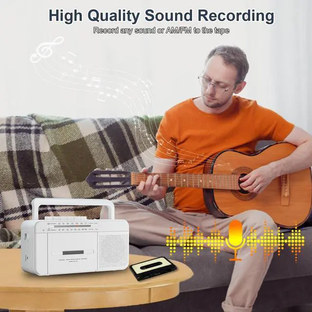 Versatile Audio Playback Enjoy your nostalgic music collection with our radio cassette player boombox, designed to play your collected tapes while also allowing you to record external voice and radio into cassette using the built-in microphone. ^^ Superior Reception Equipped with a long antenna and an upgraded DSP chip, this cassette tape player guarantees the best AM/FM reception, covering AM frequencies from 520-1710 kHz and FM from 87-108 MHz, ensuring clear and reliable sound. ^^ Powerful Sound Quality Featuring a robust 6W speaker, this cassette player boombox delivers excellent sound quality whether you are playing tapes or listening to the radio.