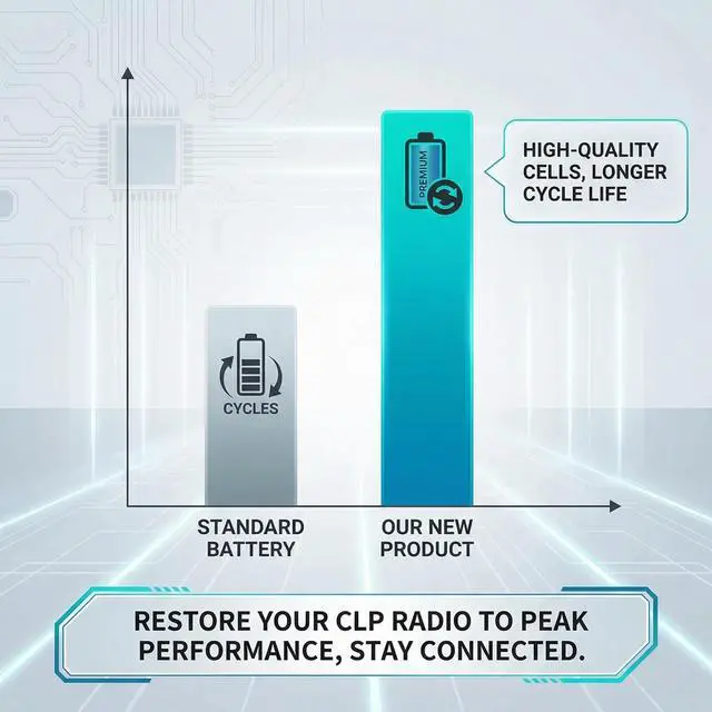 Precisely matched dimensions: 53.83 x 35.43 x 5.84 mm. Completely identical to the original battery, plug and play, helping your CLP walkie-talkie regain extended working range, meeting the all-weather needs of industries such as hotels, retail, and security. ^^ Intelligent Protection, Safe and Reliable Built-in precision-engineered protection board provides five layers of safety protection: overcharge protection, over-discharge protection, short circuit protection, overcurrent protection, and temperature control protection. The battery cells undergo rigorous capacity matching to eliminate the risk of bulging and leakage. Complies with international lithium-ion battery transportation standards and has passed UN 38.3 testing certification, ensuring safe use. ^^ Environmentally Friendly Materials, Long-Lasting Battery Life Lithium-ion batteries have no memory effect; charge as needed, no need to fully discharge. Cycle life can reach over 500 cycles, maintaining strong power even with long-term use. Complies with RoHS environmental standards and does not contain harmful substances such as mercury and lead. It is recommended to charge every 3 months to maintain battery activity.