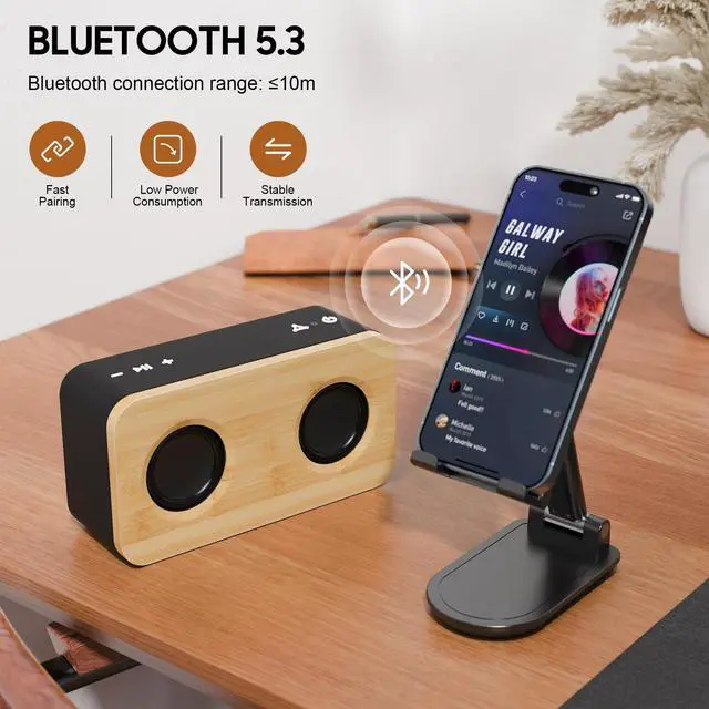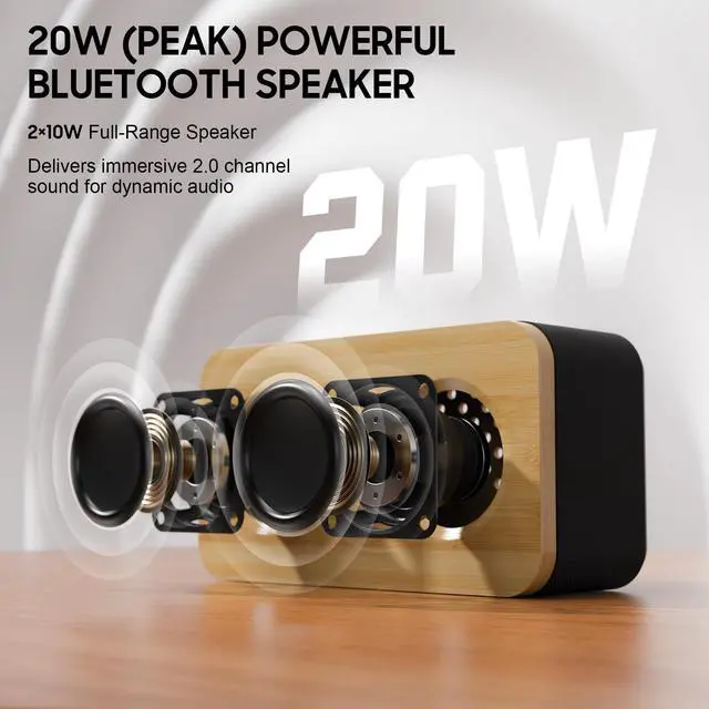 IMMERSIVE STEREO SOUNDBluetooth speaker features dual 10W full-range speakers with a peak power output of 20W, delivering powerful and clear stereo sound. It produces crisp highs and deep bass, with its professional acoustic design delivering a truly immersive audio experience. The top choice for Christmas gifts ^^ BLUETOOTH 5.3 CONNECTIVITYSpeakers bluetooth wireless pairs quickly with devices within 10 meters for a stable connection. Featuring low-power design and multiple playback options including TF card and 3.5 mm audio jack, it's perfect for home office use or backyard barbecue parties ^^ 7