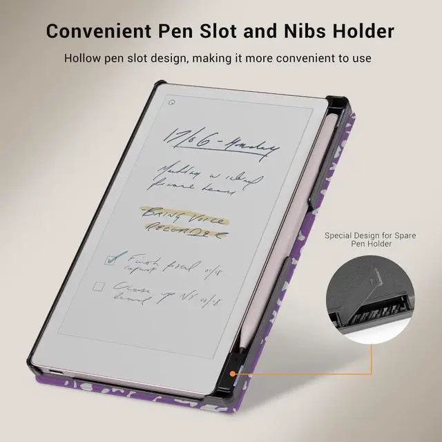 CoBak Case for Remarkable Paper Pro Move 7.3" 2025 Released- Smart Auto Sleep/Wake Folio Lightweight Protective Cover with Built-in Pen Holder and Nibs Holder (Grape Purple Notebook)