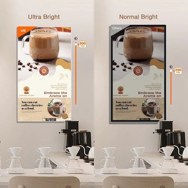 It supports 24/7 continuous loop playback and screen rotation, enabling flexible information delivery with remote control capabilities. ^^ Robust CompatibilityThe built-in Android-based digital menu boards for restaurants ensures seamless connectivity with diverse devices while maintaining stable signal transmission. With 2K display support, every frame remains crystal clear and lossless. ^^ Ultra-Portable & Smart ManagementThe digital signage display supports HDMI plug-and-play functionality without requiring drivers. It comes pre-installed with the Google Play Store, enabling immediate operation upon startup. The complimentary