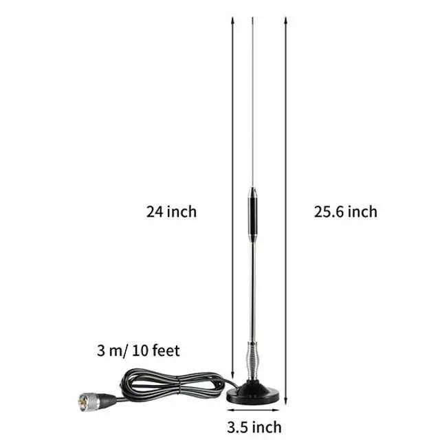 OhmAntenna Height: 24 inch; ^^ Compatible withUniden PRO505XL or Bearcat 980SSB / 880, Cobra 19 DX IVCobra HH50WXST HH50 MRHH350FLT C75WXST HHRT50Midland: 75-822 75-785 MHS75;
