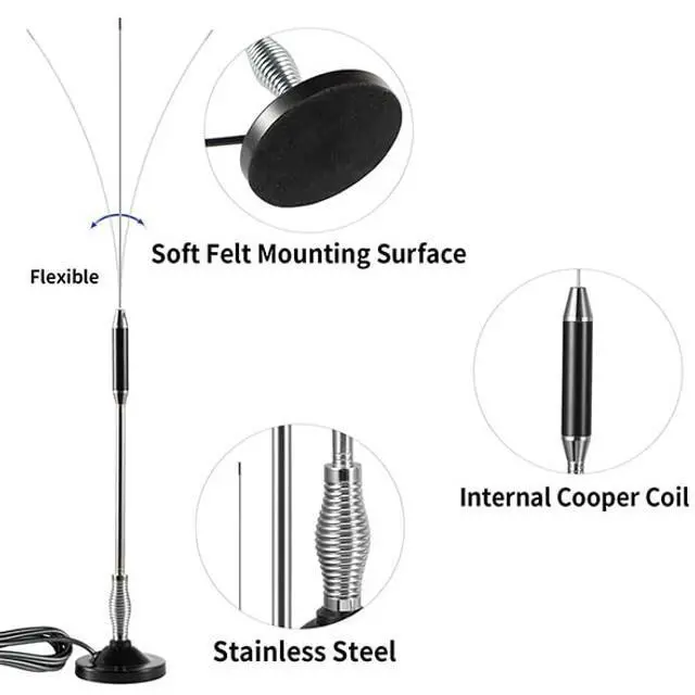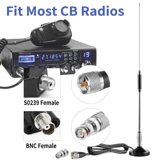Compatible with CB radios from many brand, improve quality and range to CB radio reception. The antenna works on all channel within CB radio frequency range of 26MHz to 28 MHzCenter 27MHz, No tuning needed ^^