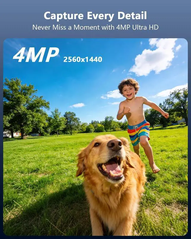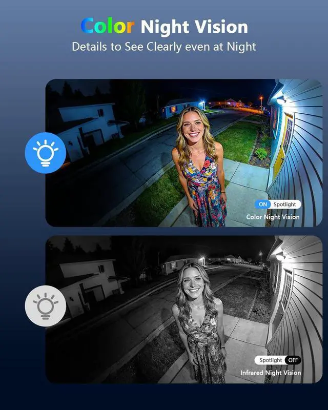 {4MP Color Night Vision} The wireless security camera delivers 4MP crystal-clear video day and night. With 25601440 resolution, four times sharper than 1080p camaras. This camera features CMOS image sensor, automatically switches between color and IR modes to capture clear images even in complete darkness.