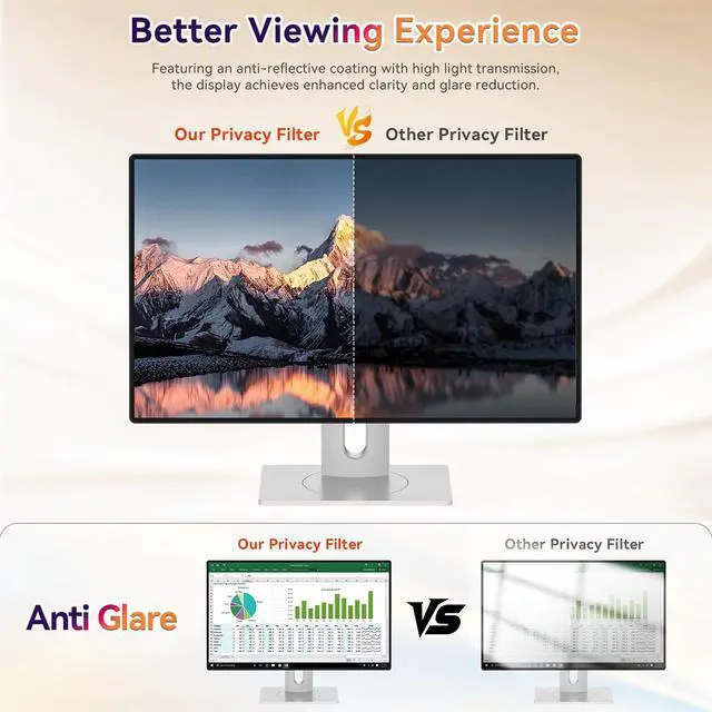 ^^ Military-Grade Privacy: See Clearly, Stay Secure Experience ultimate confidentiality with our advanced privacy screen 32 inch monitor! Utilizing revolutionary micro-louver technology, it restricts the viewing angle to +/- 26 degrees. Enjoy crystal-clear vision head-on while side views instantly darken snoopers see only a black screen! This 32 inch monitor privacy screen is your essential defense against visual hacking, keeping your work and data completely private from prying eyes. ^^ Complete Protection Package - Premium Value Get exceptional value with our all-inclusive monitor privacy screen 32 inch kit!