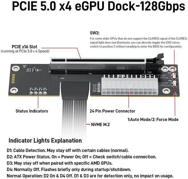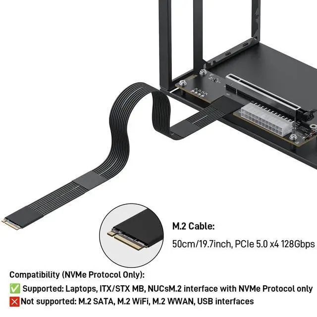 Package Include: NVME M. 2 Female to PCIe x16 Enclosure Dock 50cm/ 19.7 inch (Note: The GPU and Power Supply are not included) ^^ Compatibility (NVMe